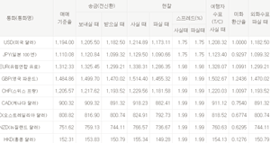 미국 달러 USD 유럽 유로 EUR, 일본 JPY 엔화, 중국 CNY 위안, 캐나다 CAD 달러, 영국 GBP 파운드, 호주 AUD 달러 등을 선택하여 볼 수 있고, 달러를 기준으로 현찰 살때, 팔때, 송금(전신환) 보낼때, 받을때, 매매기준율, 전일대비, 미화 한산율 정보를 확인할 수가 있습니다.