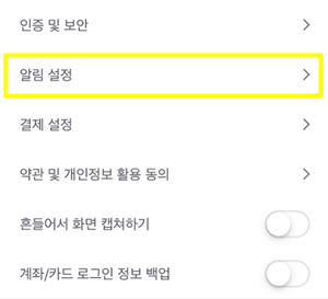 만보기 앱이 여러가지 많이 있지만 그 중 토스는 금융 앱이지만 토스 만보기 사용동의를 해준 후 하루 10,000보를 걸으면 100원을 지급해주고 있으며 쌓인 적립금은 바로 현금처럼 인출이 가능한데 토스 만보기 설정 메뉴에서 알림 설정 메뉴를 클릭합니다.