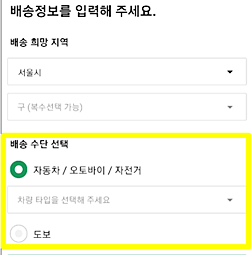 쿠팡이츠 알바를 수행하게되면 급여를 받을 은행과 계좌번호도 필요하니 입력해주고, 배송, 배달을 희망하는 지역과 배송 수단을 선택하고, 배송 희망 지역은 중복 선택이 가능하니 너무 먼곳을 제외하고 고르면 되겠습니다.