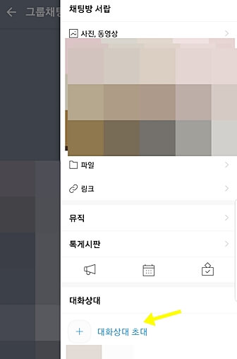 단체방을 만든 후 추가로 대화상대 및 친구 초대는 채팅방에서 맨 우측 햄버거(줄세개)모양을 클릭하여주세요.