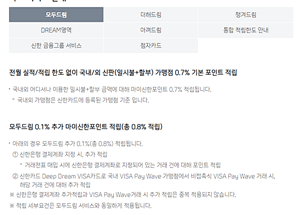 신한카드에서 발급하는 딥 드림카드로 주유 이외에도 포인트를 적립해주고 여러 업종에서 적립을 해주고 있어 활용도가 높은 효율적인 카드로 무실적 주유카드 추천 카드 중 하나입니다.
