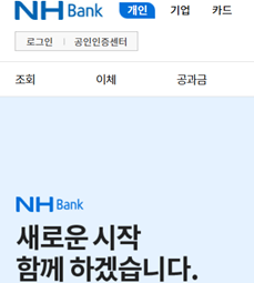 먼저 NH 농협 메인 홈페이지에 접속해주면 됩니다.