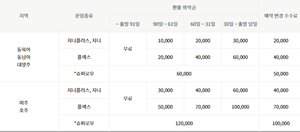 예약변경시에도 수수료가 부과되는데 왕복의 경우 가는편, 오는편에 각각 부과되고,항공권 유효기간 만료일로부터 30일 이내에 환불 신청을 할 수 있으며 30일이 지나면 환불이 안될수 있으며 항공권 성인, 소아 동일한 금액으로 적용되며, 좌석을 점유하지 않는 유아(Infant)의 경우 부과되지 않습니다.