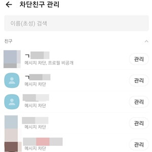 카톡을 차단한 사람에게 내 프로필 비공개 하는방법으로는 차단 친구 목록에서 오른쪽 관리 버튼을 누르면 프로필을 숨길 수 있는 메뉴가 있으니 여기서 설정을 하면 됩니다.