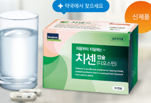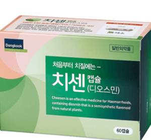 동국제약에서 출시된 치센은 식물성 플라보노이드인 디오스민이 함유되어있는데, 이 물질이 치질을 치료하는 주요한 성분입니다. 혈액순환을 원할하게 만들어 결론적으로 혈관의 수축을 도울 수 있으며, 활성산소를 억제하여 염증을 가라앉히는 효과를 가지고 있습니다.
