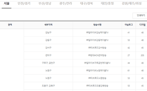 서울지역만 보더라도 강남구, 노원구, 도봉구 등 방송사명, 아날로그, 디지털, 채널번호가 모두 다른 것을 볼수 있습니다. 강남구 JTBC2 채널번호는 아날로그 41번이고 디지털은 48번이며 강동구의 JTBC2 채널번호 아날로그 53번, 디지털은 48번 입니다.