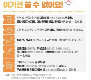 지역 소상공인을 돕기 위해 마련된 쿠폰이므로 가맹점 형태로 운영되는 곳이라면 대부분 사용이 가능한 곳으로 파리바게뜨, 뚜레쥬르, 편의점(CU, GS25, 세븐일레븐 등), 다이소, 올리브영 등에서도 사용이 가능합니다.
