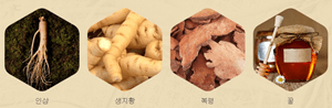 생지황은 음액과 혈을 보양하며 정수를 보하는 약재이고, 복령근은 면역, 항암, 향균, 혈당저하 등의 효능이 있고, 인삼은 원기를 보해주고 정신을 편안하게 해주는 약재라합니다.