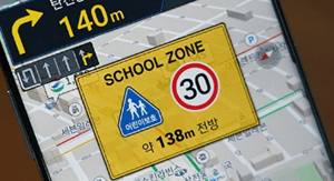 민식이법으로 스쿨존에 가까워지면 어린이보호 표시판과 시속 30KM 이하 서행 운전 표시판이 노란색 영역 안에 팝업으로 화면에 크게 나타나며 스쿨존 자체를 피하고 싶다면 환경설정 - 스쿨존 설정 - 스쿨존 회피경로 탐색 기능을 켜 놓으면 가능합니다.