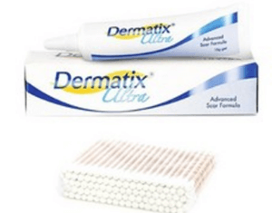 상처 치료제는 상처 부위의 소독과 염증을 제거하고 2차 감염을 억제하는 효과로 흉터 개선에는 효과가 없고, 흉터 전문 제품 더마틱스 울트라는 붉고, 솟아오르고, 착색된 흉터를 흐리고, 부드럽고, 평평하게 개선한다고합니다.
