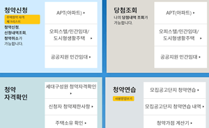 본인 공인인증서는 필수이고, 마이페이지에 청약신청부터 청약 당첨조회, 청약자격확인, 모집공고 단지 청약 연습, 청약일정 및 통계, 청약제도 안내, 고객센터 이용을 할 수 있습니다.오늘의 청약일정, 오늘의 당첨자 발표를 볼 수 있습니다.