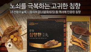 광동제약의 ‘침향환’은 이런 침향과 녹용을 주원료로 담은 건강식품으로 활력 증진, 체질 개선, 건강 증진, 영양 공급에 도움을 준다고 합니다.광동 침향환 보관방법은 개봉 후에는 맛과 향을 지속하기 위해 냉장 보관하시면 좋습니다. 섭취시 냉장고에서 꺼낸 10분 후 씹는것이 좋습니다.