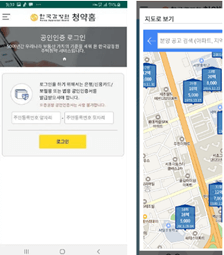 어플로도 간편하게 신청 및 조회가 스마트폰에서도 가능해졌는데요. 안드로이드 기종의 경우 청약HOME 앱을 설치 후 이용 가능하고, 모바일 웹 이용시 청약HOME 인증서 관리 > PC에서 모바일로 인증서 가져오기를 통해서 로그인을 해야 합니다.
