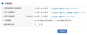 신청 내용은 수정이 불가능하며 용도가 금융기관제출용, 제출처는 금융기관으로 고정 된답니다. 주민등록번호, 주소, 금액 공개 또는 비공개를 선택합니다. 금액은 꼭 공개로 해야하고, 주민등록번호 뒷자리, 주소는 비공개로 해서 제출해도 됩니다.