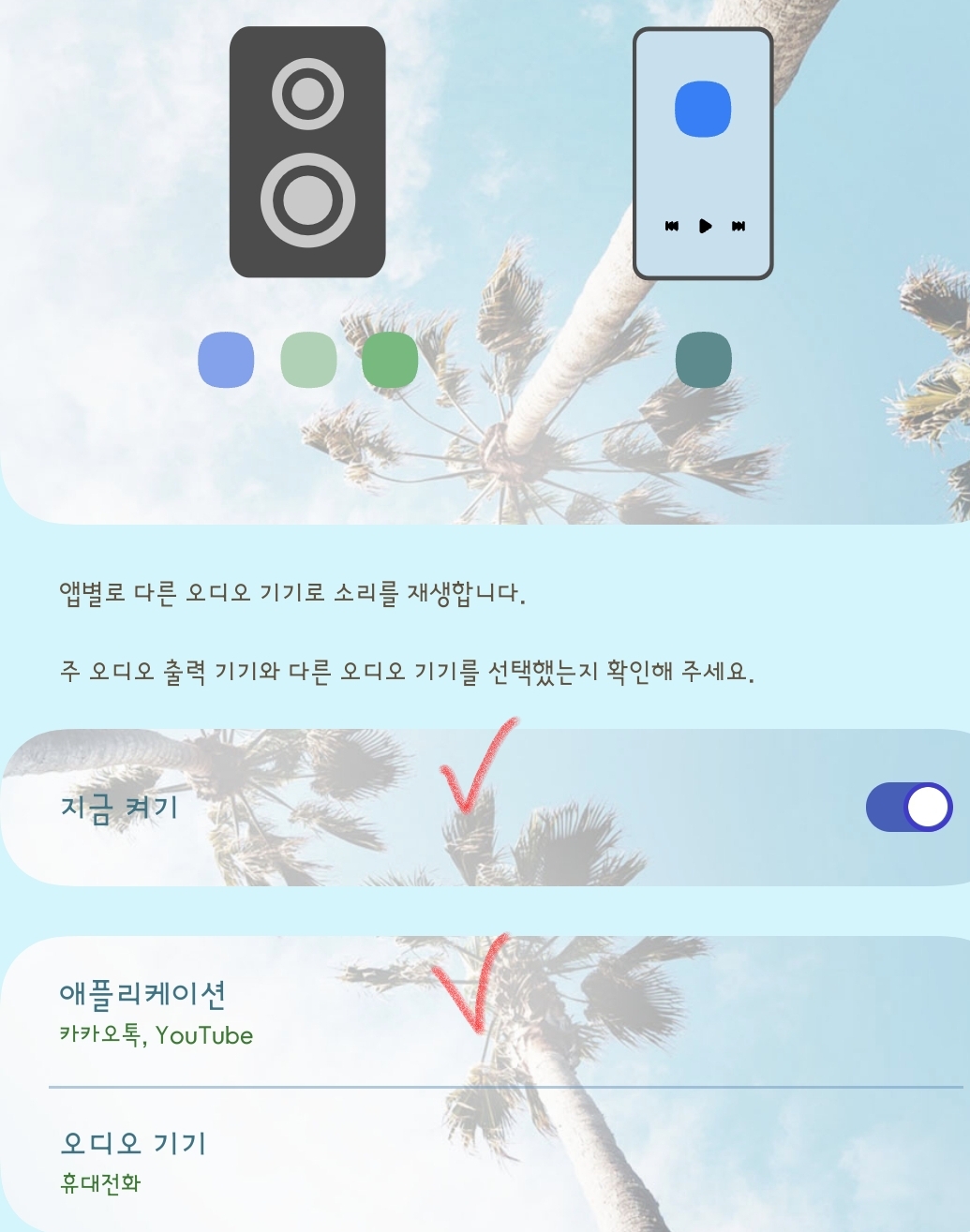 스마트폰에서 "앱 소리 분리 재생" 기능은, 특정 앱의 소리는 블루투스 스피커를 통해서 소리가 재생되도록 하고, 스마트폰의 스피커에서는 다른 앱의 소리가 재생되도록 할 수 있는 유용한 기능으로 갤럭시폰의 소리를 더욱 편리하고 다양하게 활용할 수 있습니다.